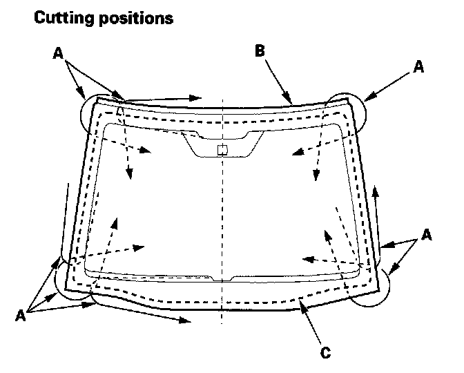 - When replacing a broken windshield, a commercially available windshield cutter can be efficiently used for cutting the adhesive. For details, follow the instruction of the tool manufacturer.