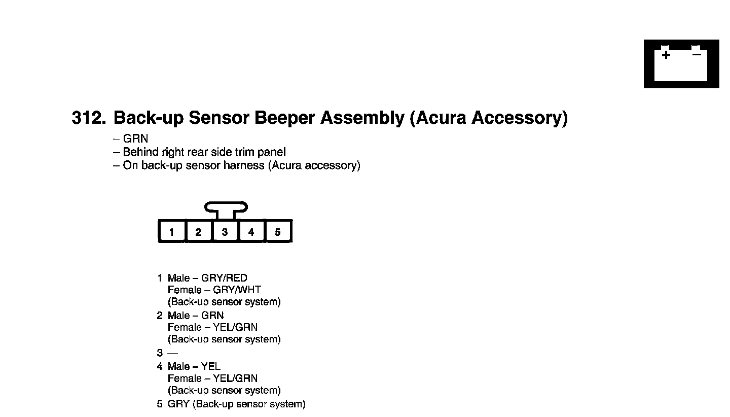 View 312 Back-up Sensor Beeper Assembly Connector View (Acura Accessory)