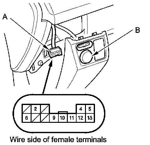 2. Disconnect the power mirror switch 13P connector (A) from the power mirror switch (B).