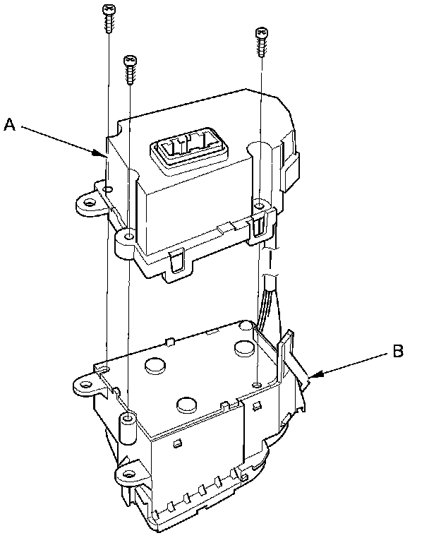 2. Remove the screws and cover (A) from the driver's climate control switch (B).