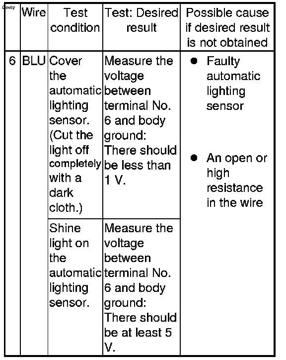 - If the input test proves OK, replace the automatic lighting control unit.