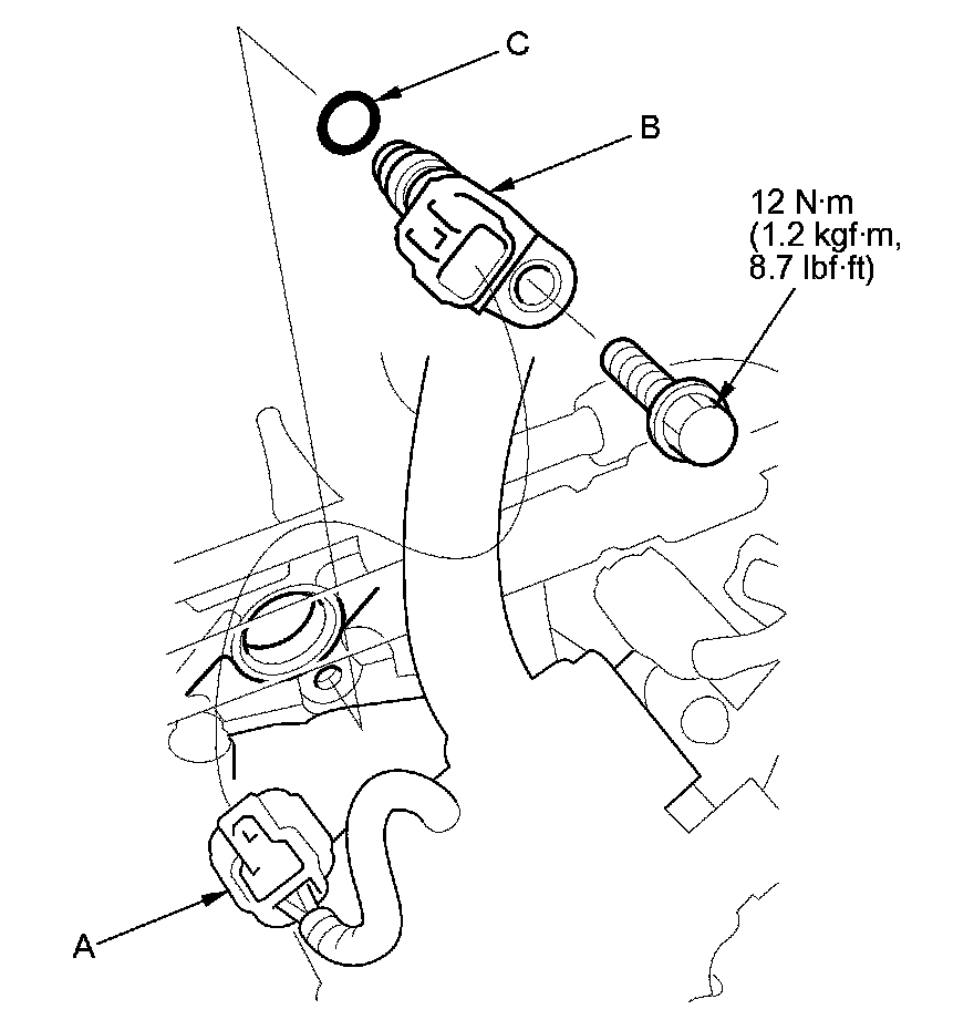 5. Install the parts in the reverse order of removal with a new O-ring (C).