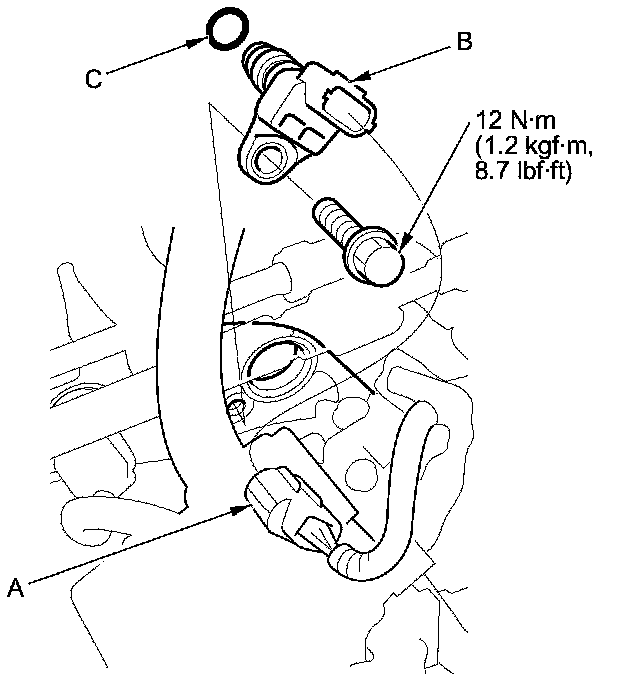 5. Install the parts in the reverse order of removal with a new O-ring (C).