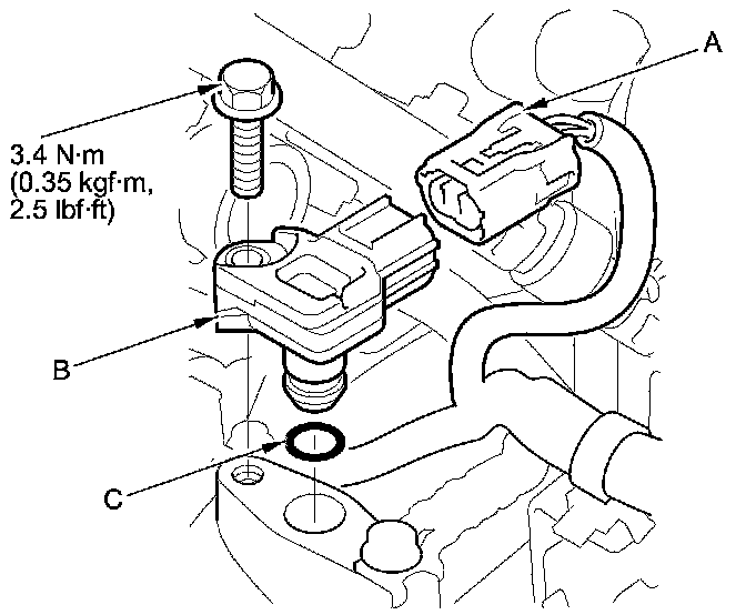 Install the parts in the reverse order of removal with a new O-ring (C).