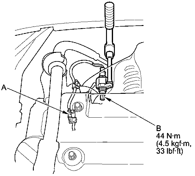 1. Disconnect the A/F sensor 4P connector (A), then remove the A/F sensor (B).