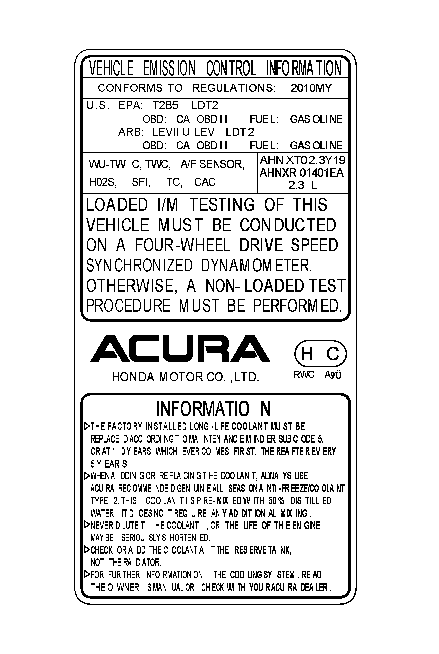 Under-Hood Emission Control Label