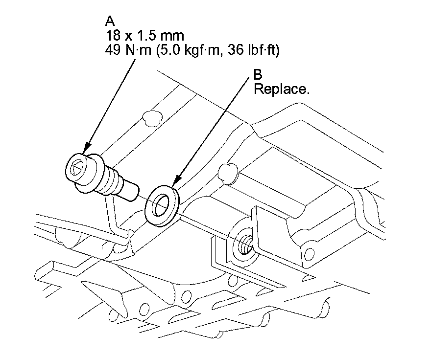 3. Remove the drain plug (A), and drain the automatic transmission fluid (ATF).