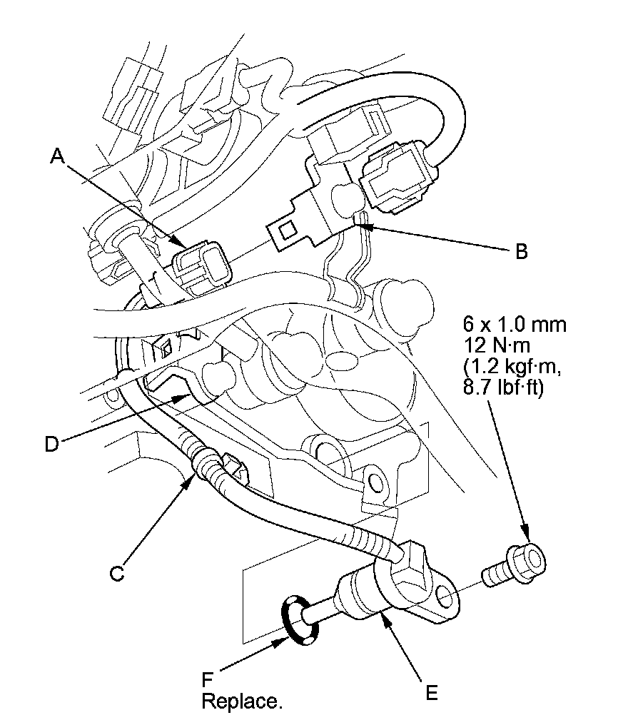 8. Install a new O-ring (F) on a new ATF temperature sensor, and install the ATF temperature sensor.