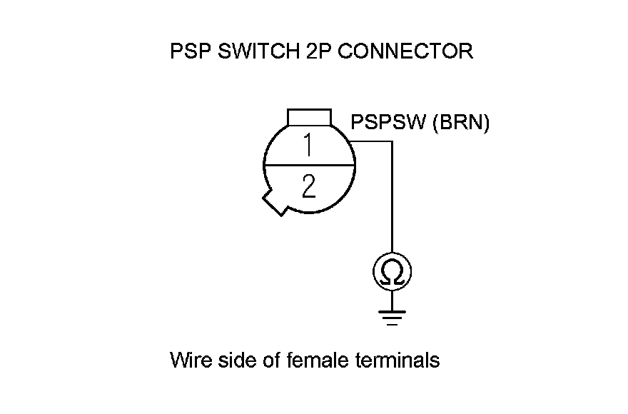 13. Check for continuity between PSP switch 2P connector terminal No. 1 and body ground.