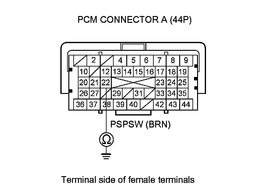 24. Check for continuity between PSP switch 2P connector terminal No. 2 and body ground.