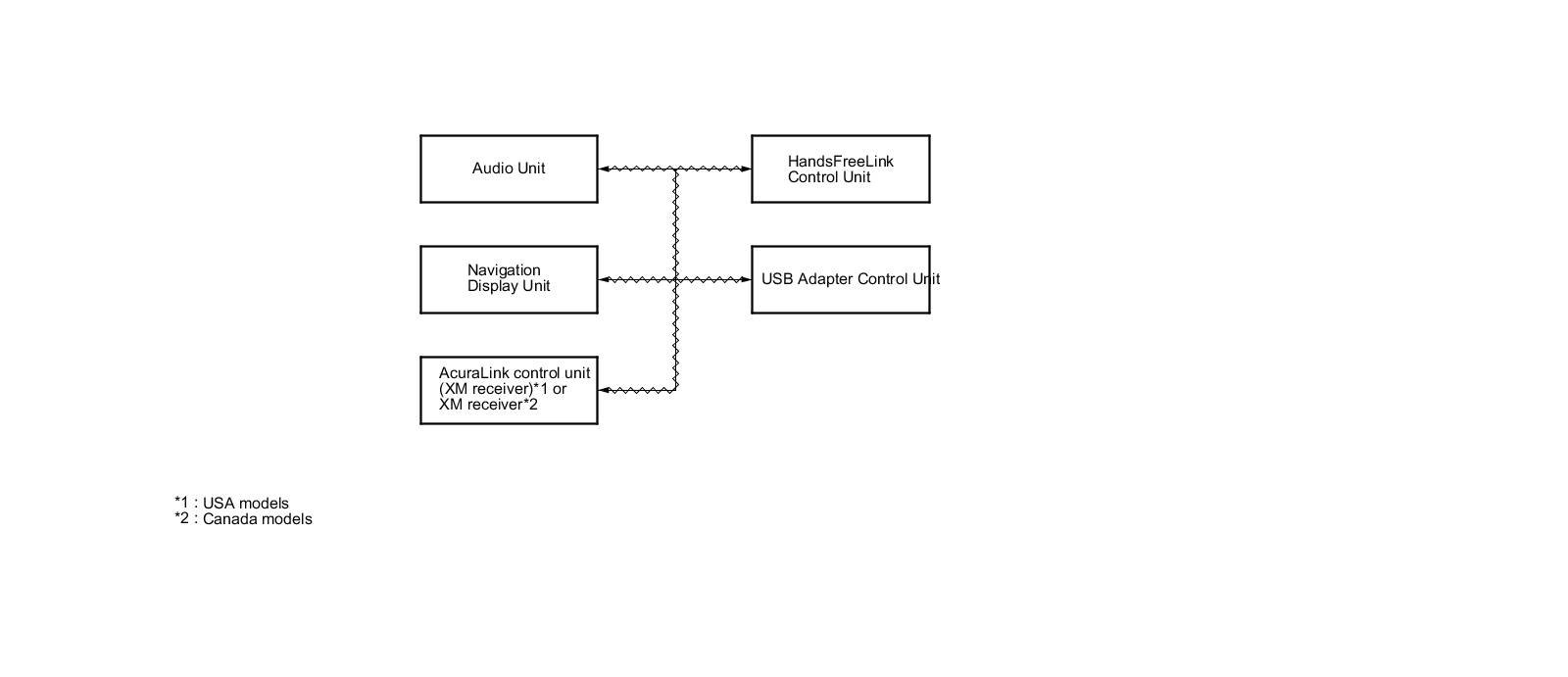 The Comm. Bus connects the HFL, XM (HIP) (AcuraLink), and navigation units. This bus supports these functions: