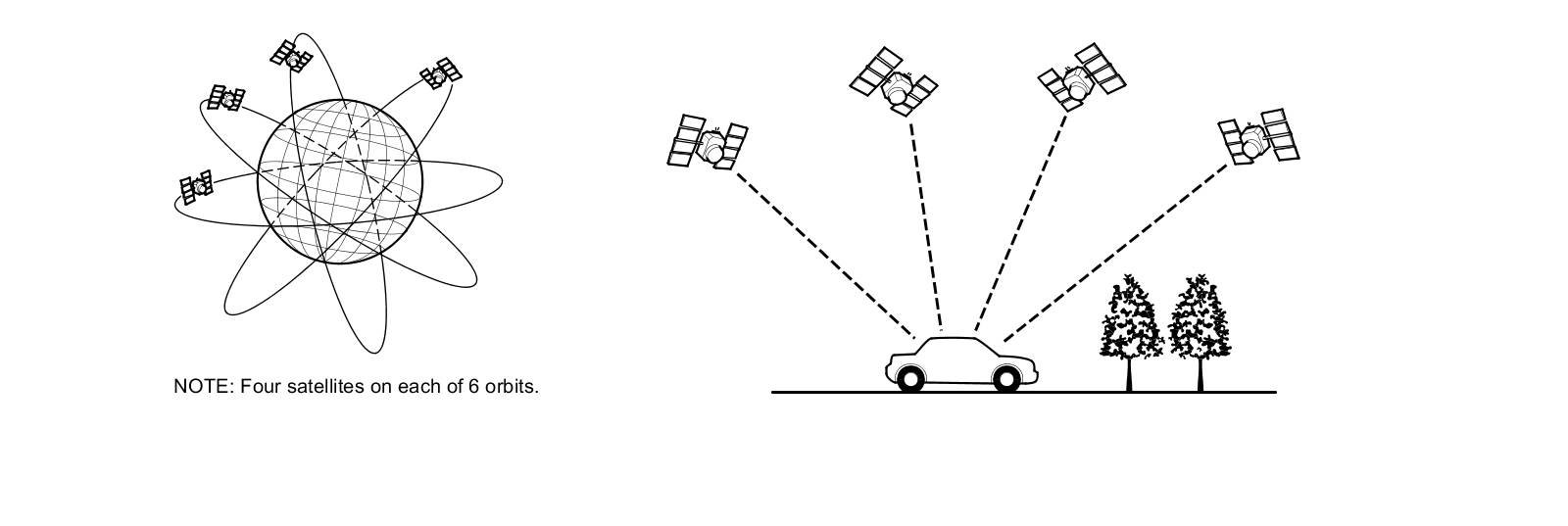 The global positioning system (GPS) enables the navigation system to determine the current position of the vehicle by using the signals transmitted from the satellites in orbit around the earth. The satellites transmit the satellite identification signal, orbit information, transmission time signal, and other information. When the GPS receiver receives a signal from four or more satellites simultaneously, it calculates the current position of the vehicle based on the distance to each satellite and the satellite's position in its respective orbit.