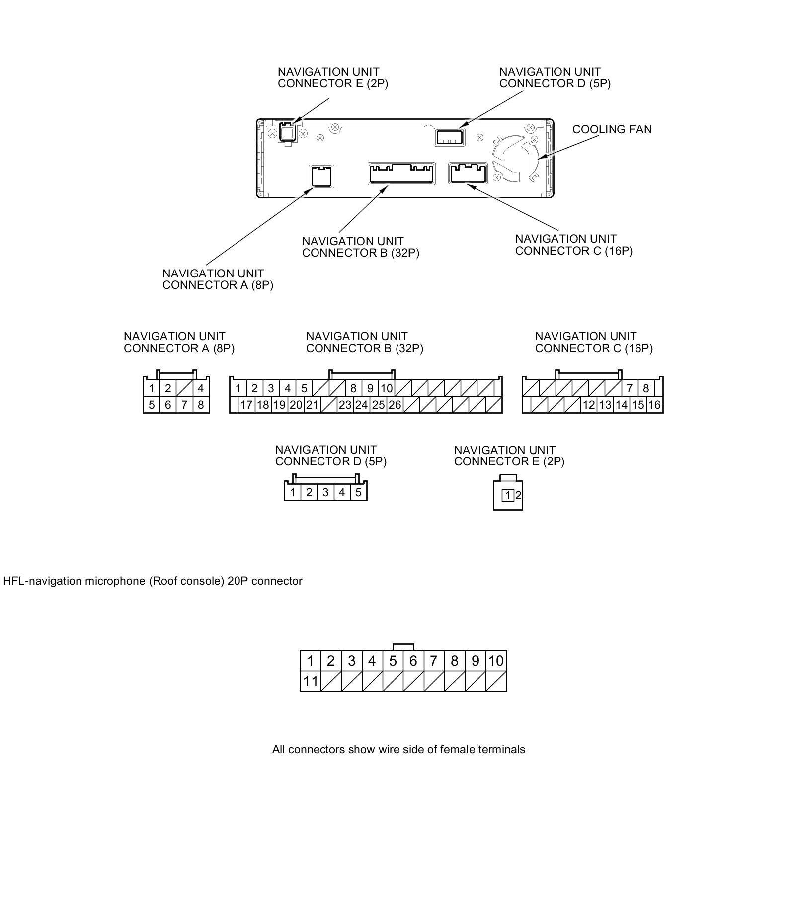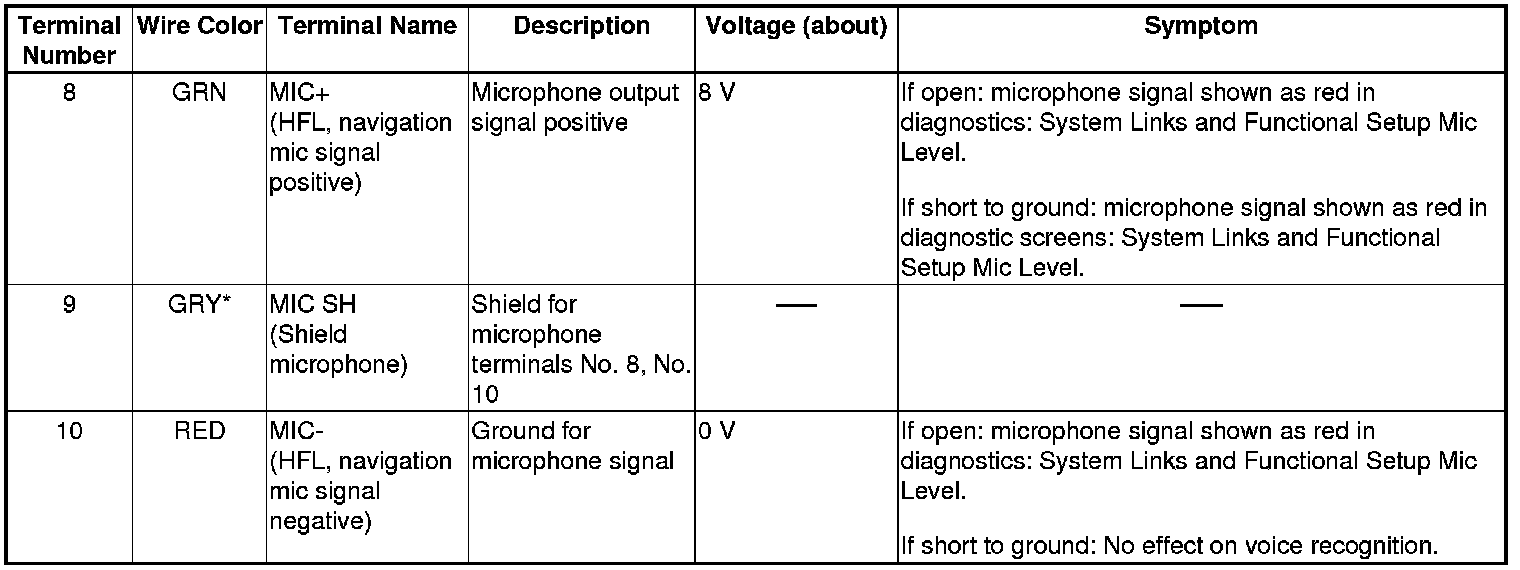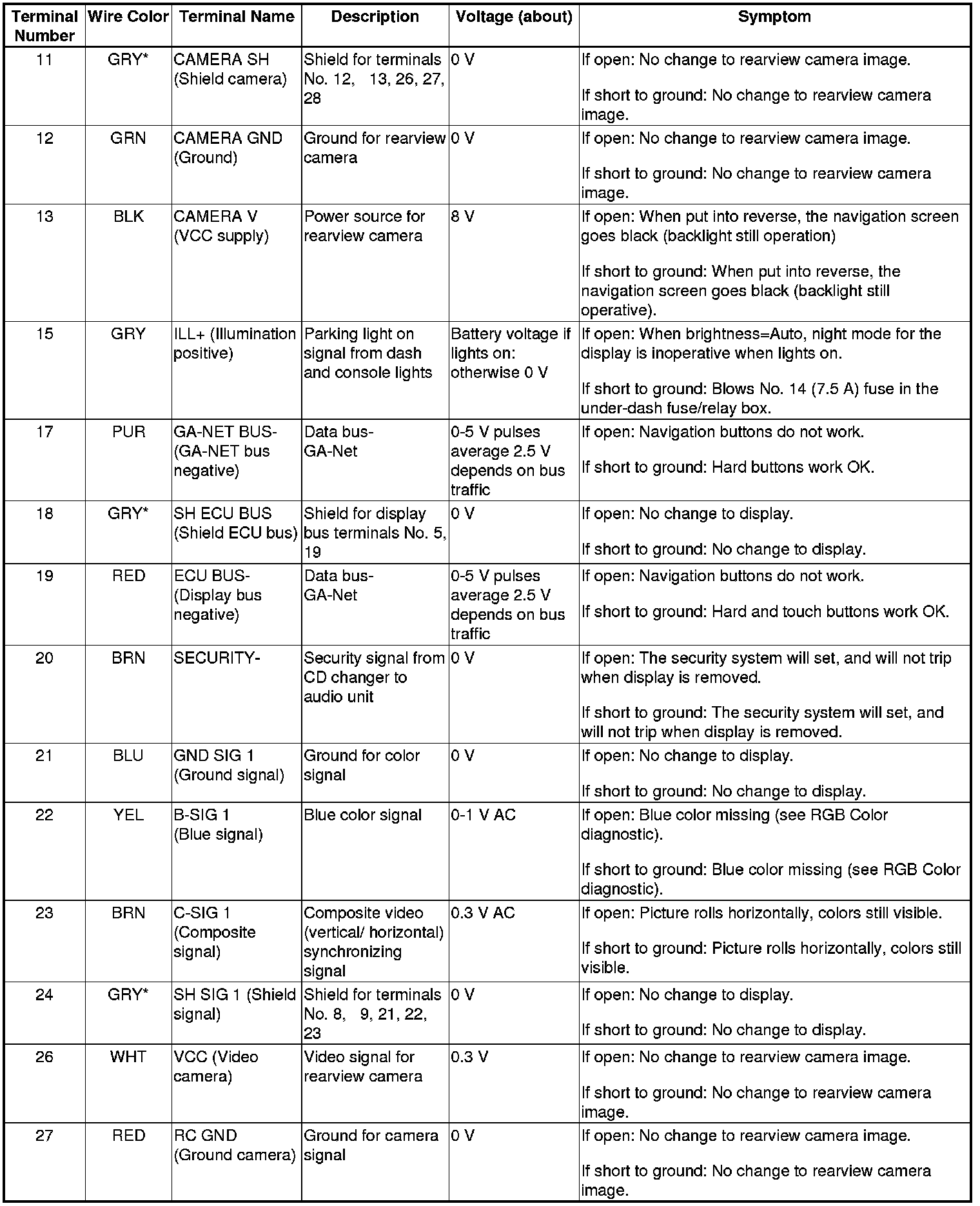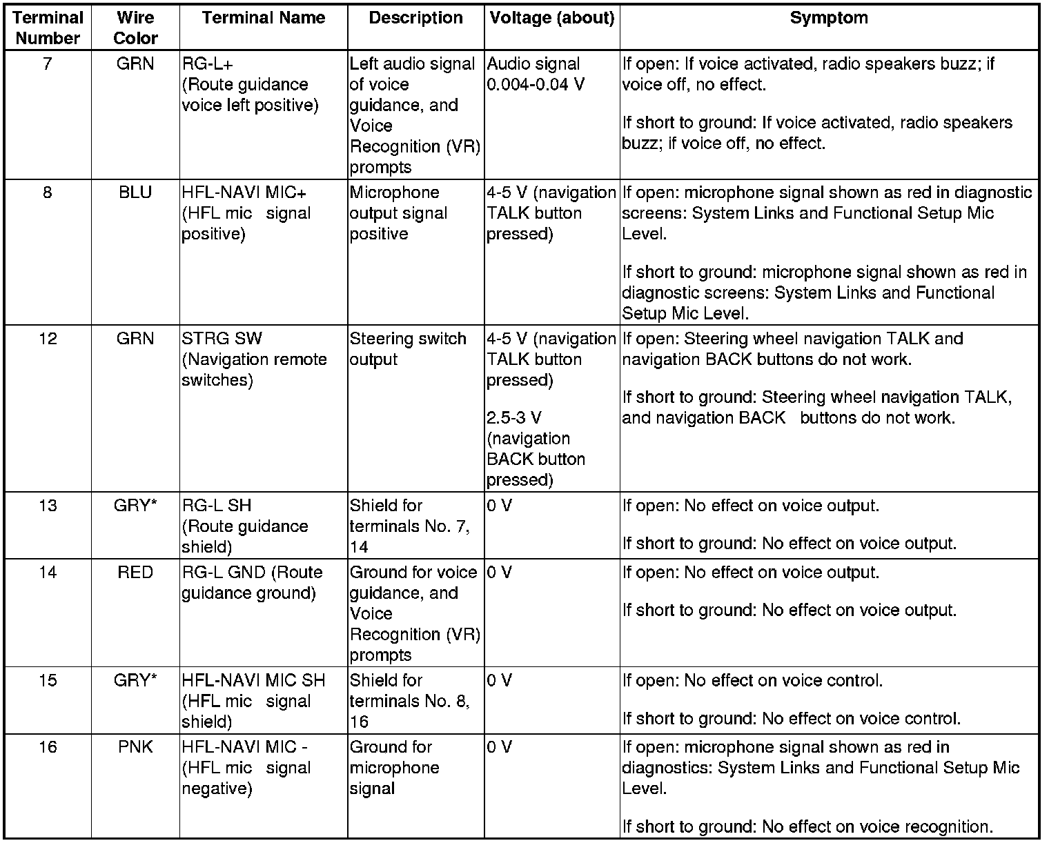 The GA-Net bus passes audio and navigation commands throughout the navigation and audio components. These commands include navigation audio/XM selections by voice, and XM station and music title names. Because the entire bus is interconnected between components, an open or short in the GA-Net bus harness may cause any or all of these functions to become inoperative.