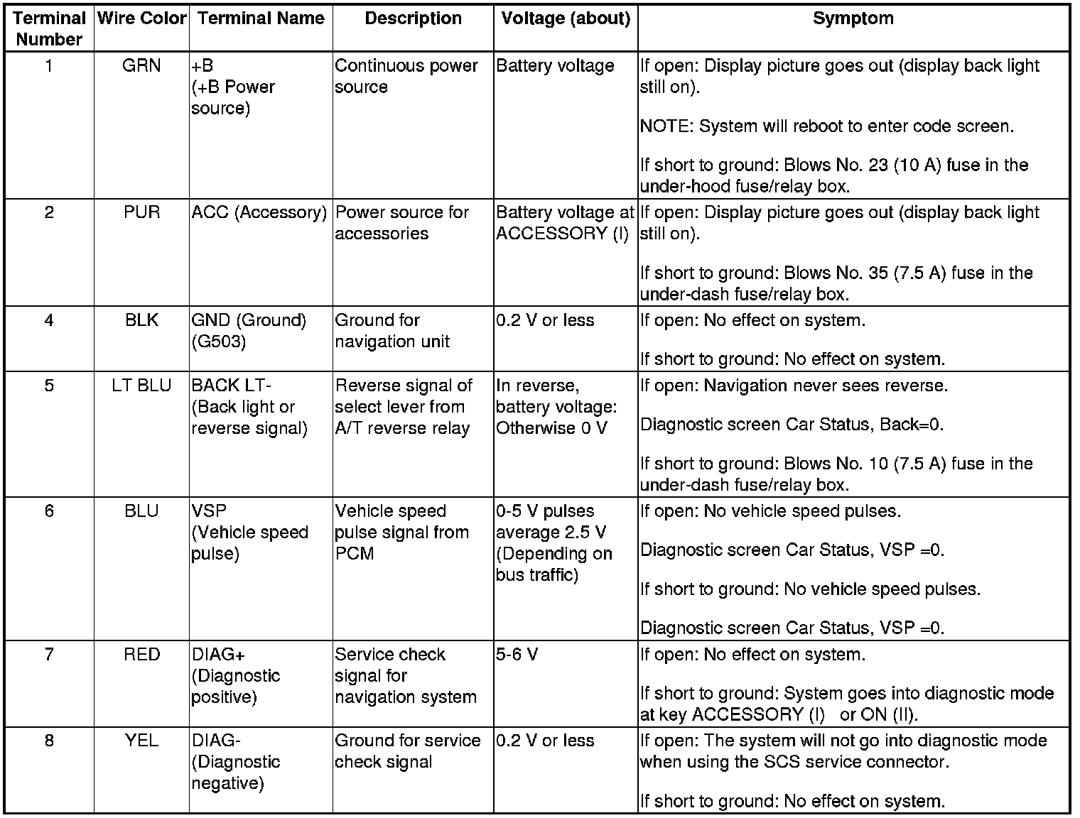 The navigation unit calculates the vehicle position and guides you to the destination. The unit performs map matching correction, GPS correction, and distance tuning. It also controls the menu functions and the DVD-ROM drive, and interprets voice commands. With control of all these items, the navigation unit makes the navigation picture signal, then it transmits the signal to the navigation display unit and audio driving instructions to the audio unit.