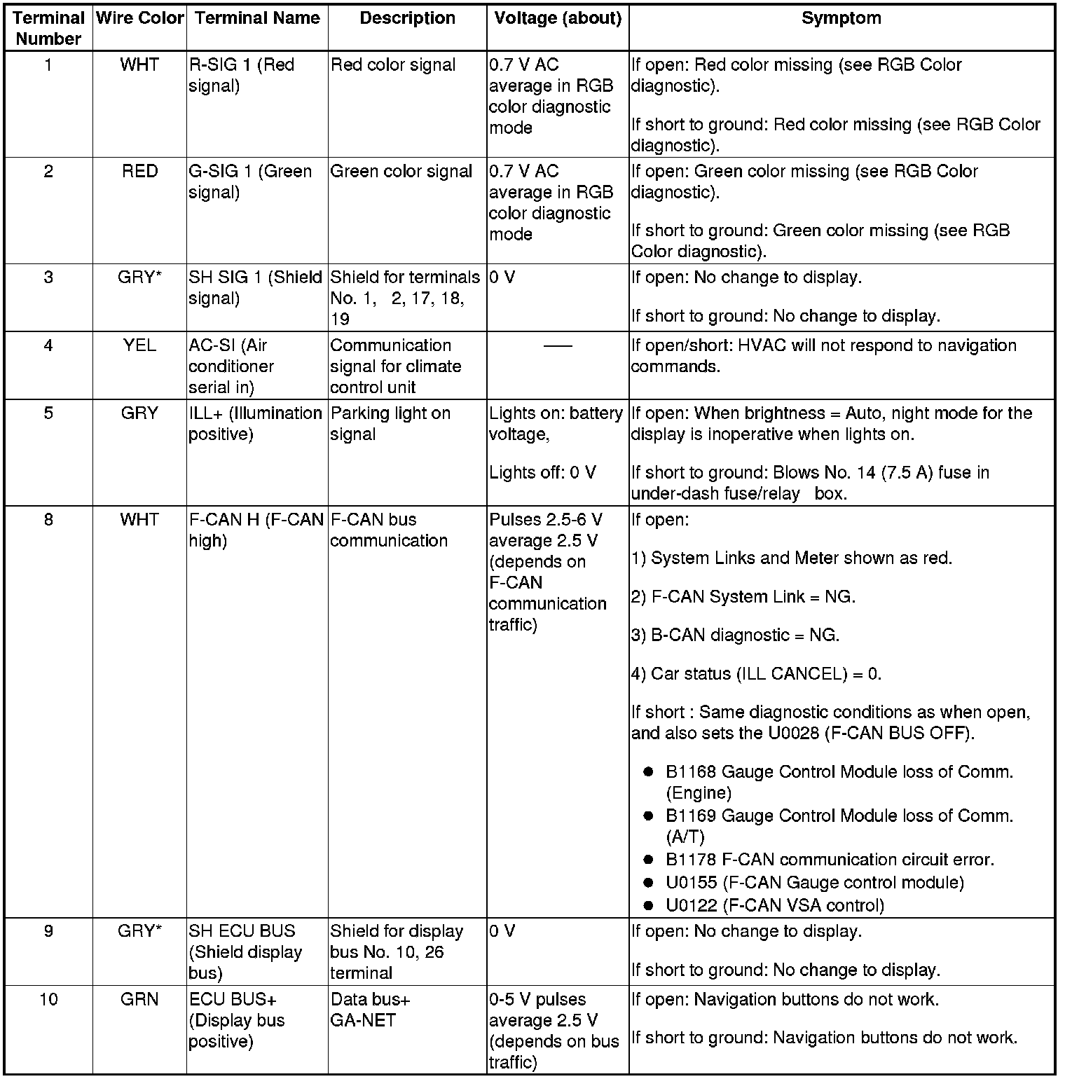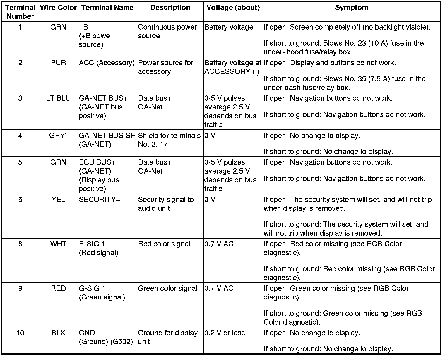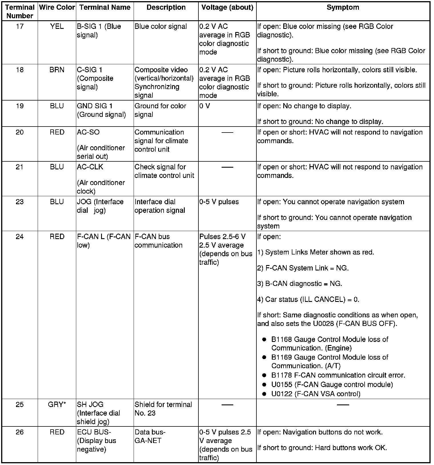 The GA-NET II communication bus passes information back and forth between the navigation display unit, the navigation unit and the audio system, The information passed on this bus are audio and climate control settings directed by the navigation unit.