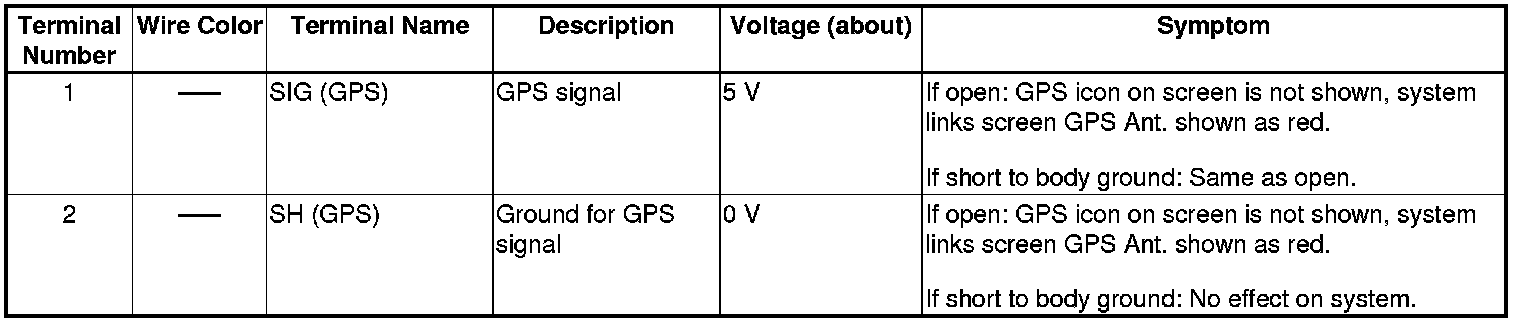 The GPS receiver is built into the navigation unit. It calculates the vehicle position by receiving the signal from the GPS antenna. The current time, vehicle position, and signal reception condition is transmitted from the GPS receiver to the navigation unit to adjust vehicle position. The clock in the subdisplay uses the clock information sent from the navigation unit.