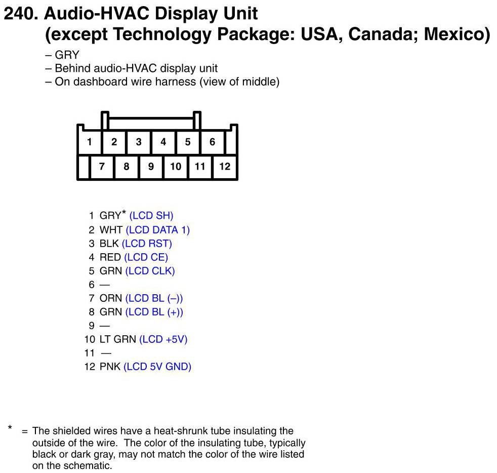 Audio-HVAC Display Unit Connector View (Except Technology Package: USA, Canada; Mexico)