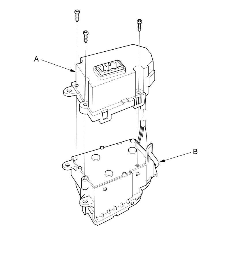 2. Remove the screws and the cover (A) from the driver's climate control switch (B).