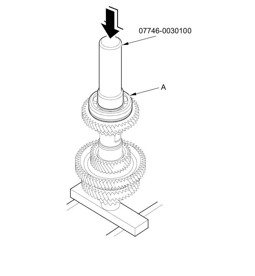 5. Install the ball bearing (A) over the countershaft, then press it into place using the driver handle (40 mm I.D.) and the press.