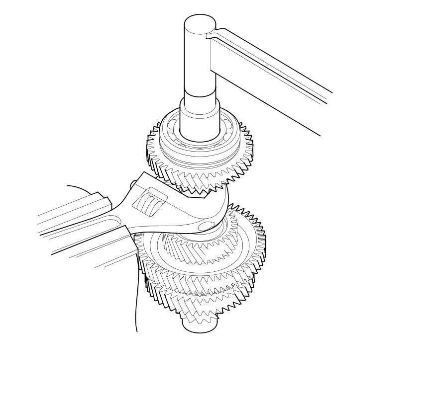 7. Hold the countershaft securely using a wrench and a vise, and tighten the locknut to 167 Nm (17.0 kg-m, 123 lb-ft).