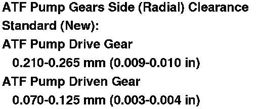 2. Measure the side clearance of the ATF pump drive gear (A) and the driven gear (B).