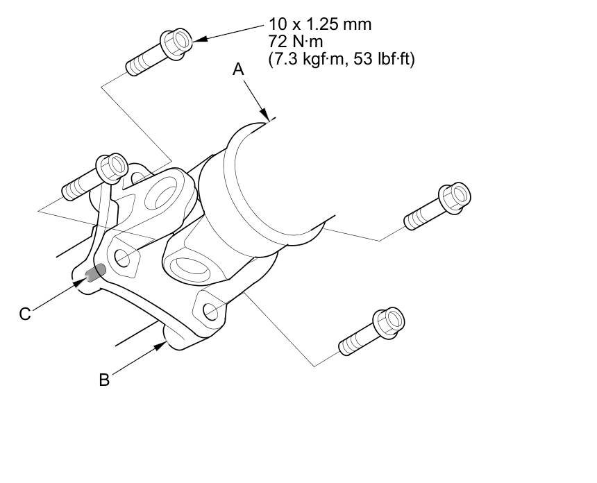 3. Install the propeller shaft (A) to the transfer companion flange (B) by aligning the reference mark (C).
