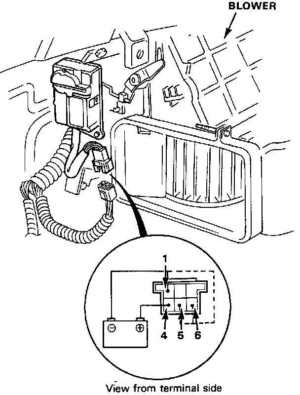 - From the recirculation door REC position the motor should turn with the 1 terminal connected to 6 terminal.
