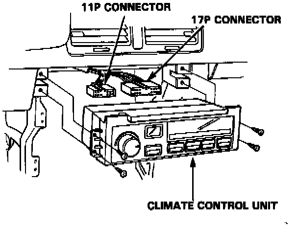 3. Disconnect the wire harness from the climate control unit before removing.