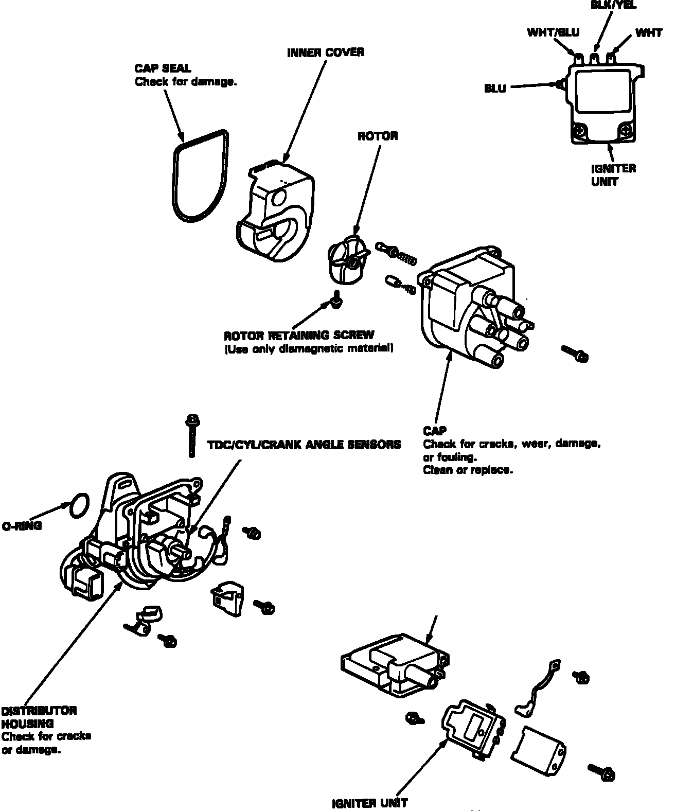 7. Check the distributor cap for cracks, wear and damages. If necessary, clean or replace it.