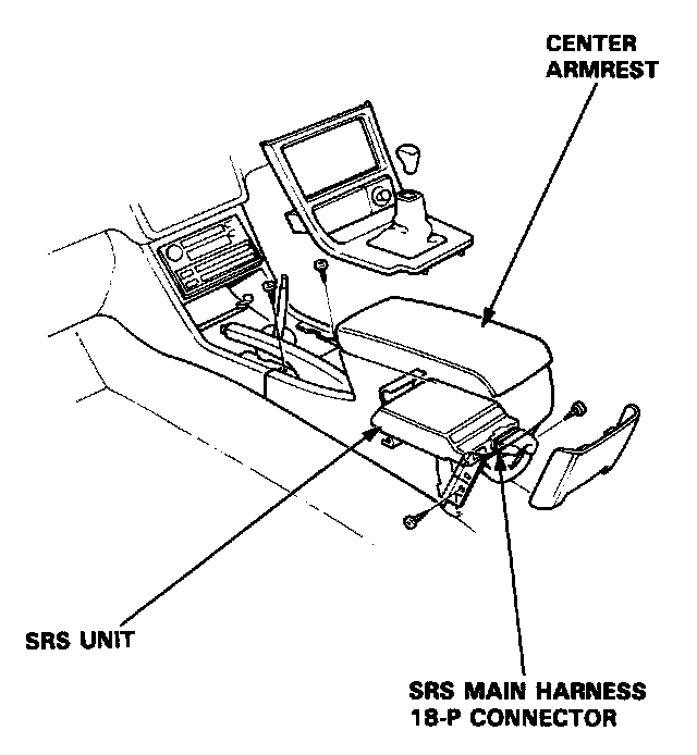 3. Remove the rear console, then disconnect the SRS main harness 18-P connector from the SRS unit.