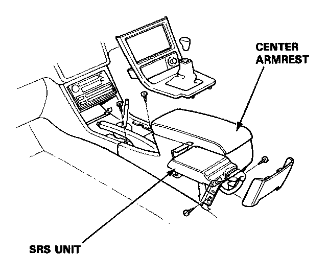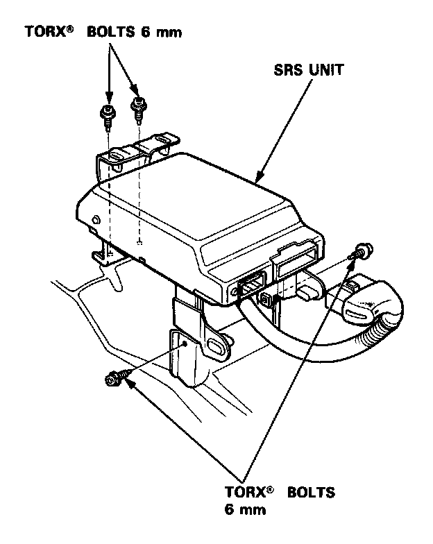 4. Remove the 4 SRS unit mounting bolts, then remove the SRS unit.