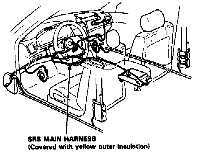 - All SRS wiring harnesses are covered with yellow outer insulation.