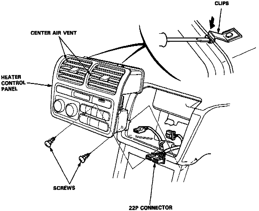 3. Remove the heater control panel assembly by pushing the clips down as shown.