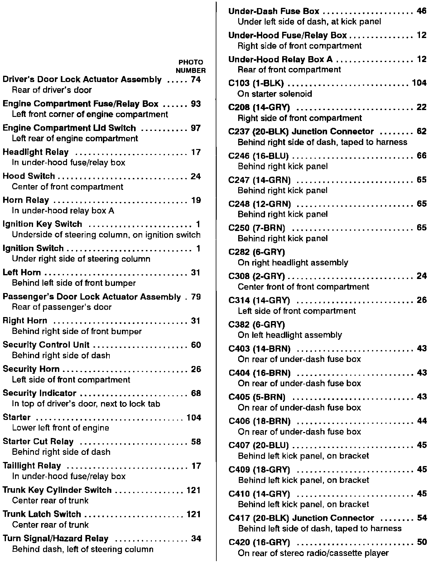 Component Location Index