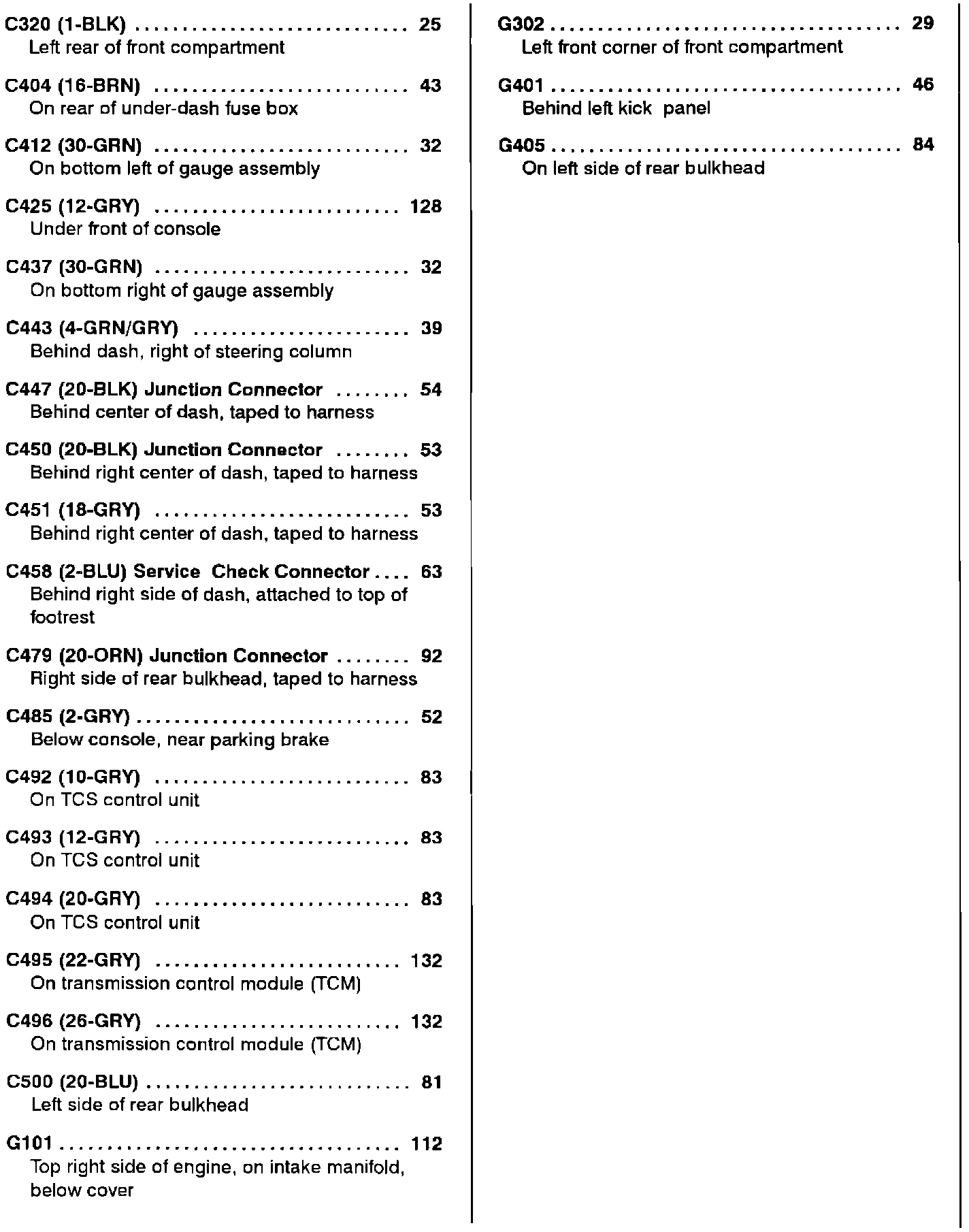 Component Location Index
