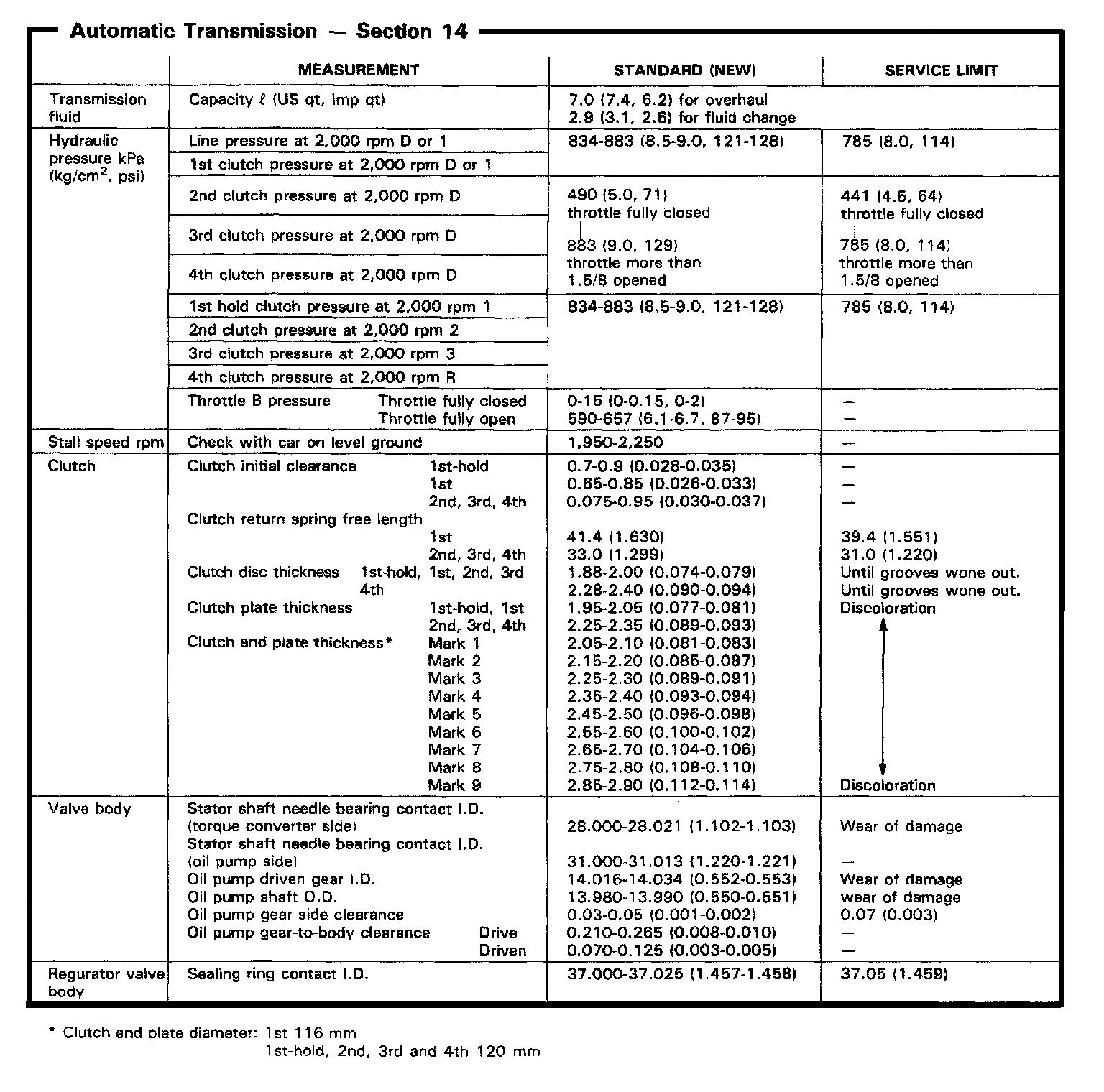 MR9A 4-spd A/T, Line Pressure, Stall Speed & Valve Body: