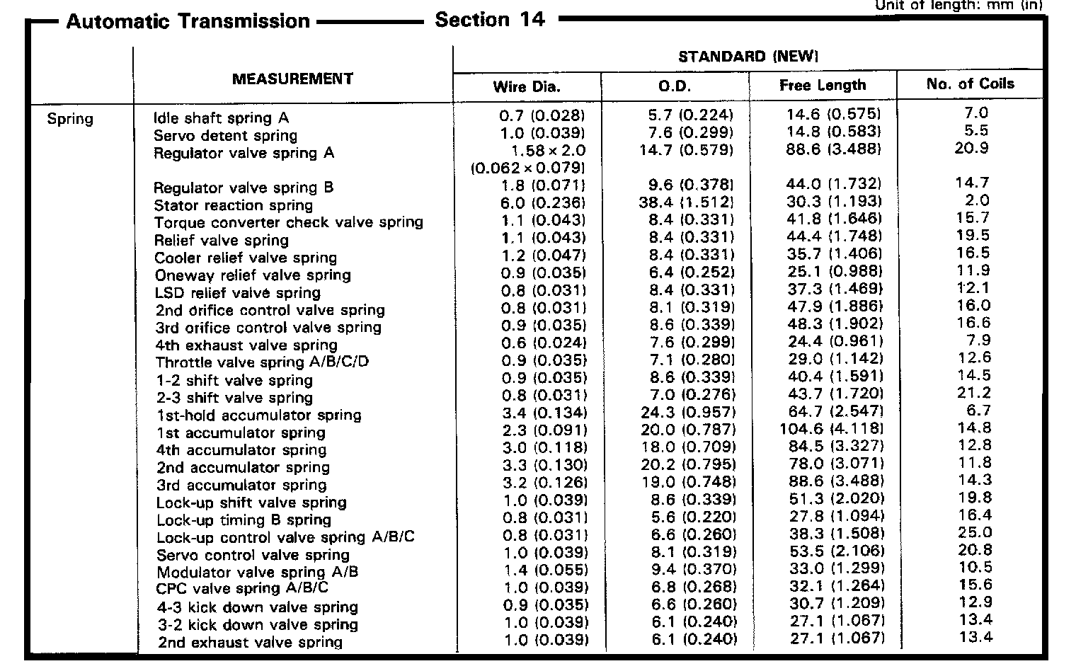 MR9A 4-spd A/T, Mainshaft/Countershaft Measurements: