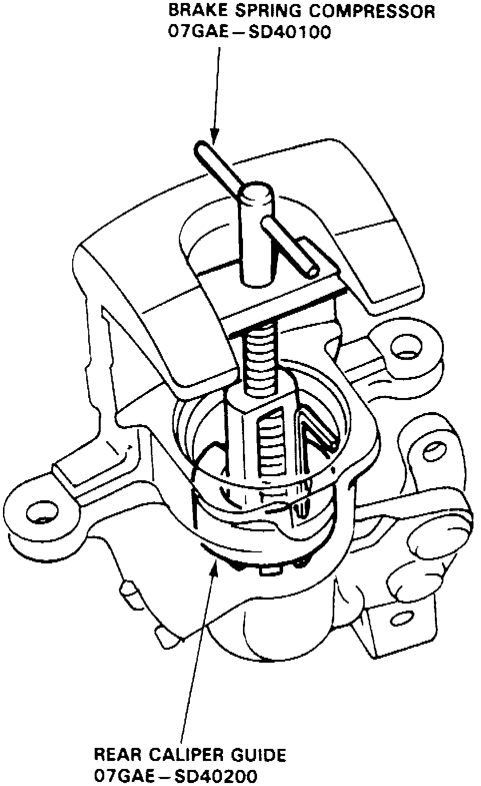 8. Install brake spring compressor tool, Fig. 11, and compress spring until tool bottoms out. Ensure rear caliper guide slides freely with spring.