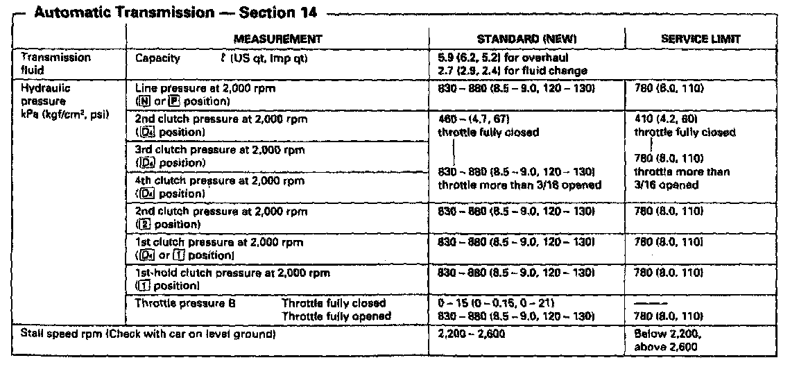 MP7A 4-spd A/T, Line Pressure / Stall Speed: