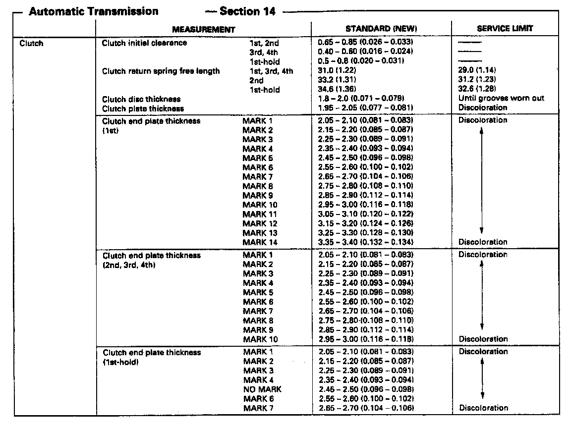 MP7A 4-spd A/T, Transmission Clutch Thickness:
