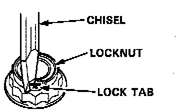 5. Cut the lock tabs of the each shaft locknut using a chisel as shown. Then remove the locknut from each shaft.
