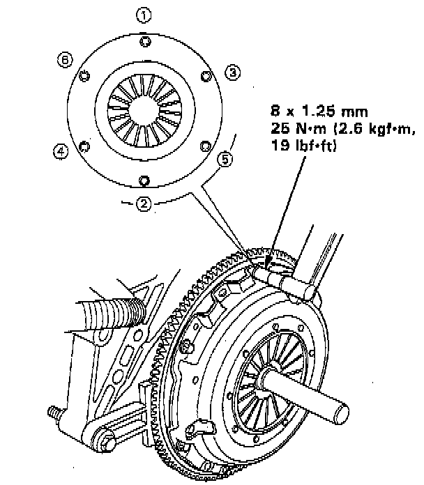 4. Torque the mounting bolts in a crisscross pattern as shown. Tighten the bolts in several steps to prevent warping the diaphragm spring.