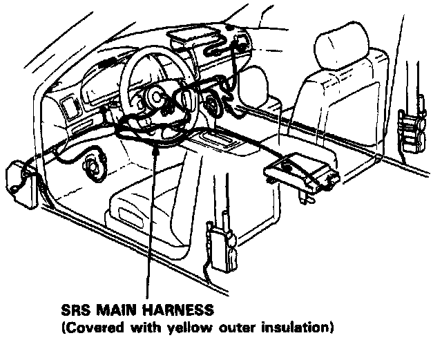 - All SRS wiring harnesses are covered with yellow outer insulation.