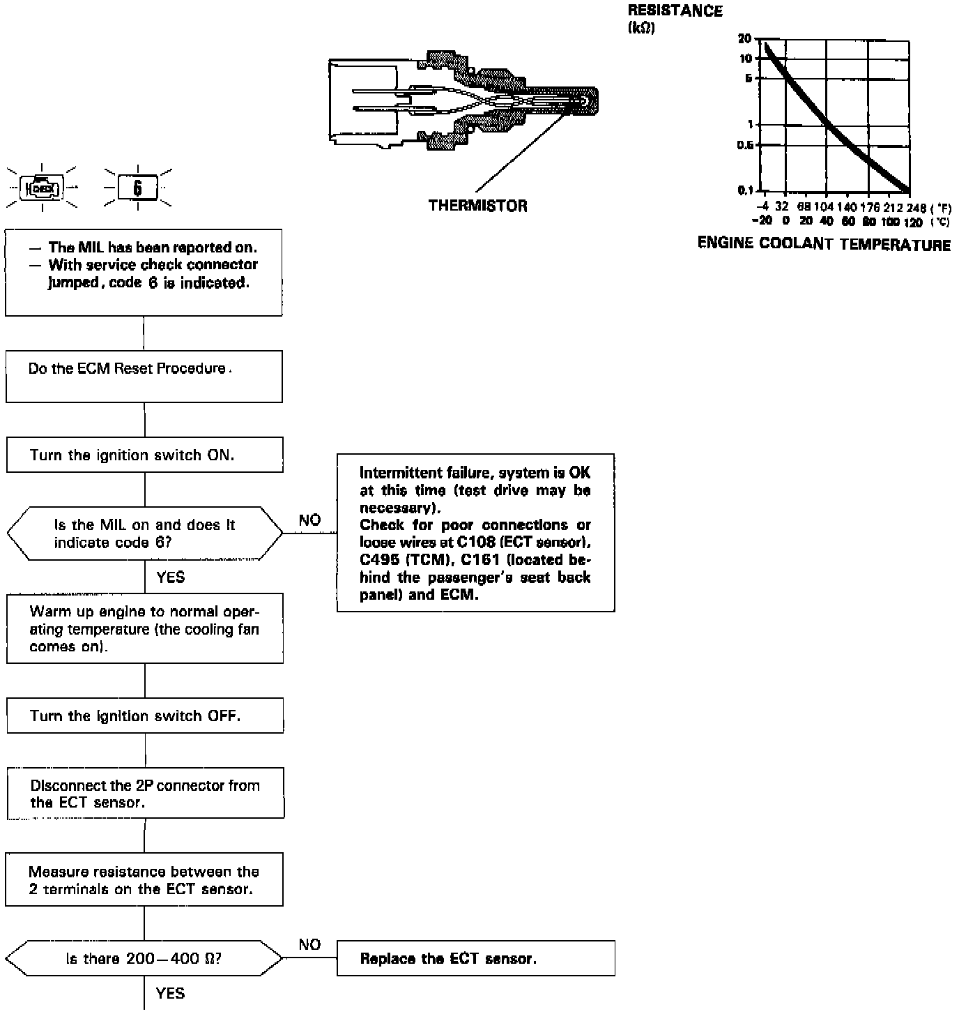 Coolant Temperature Sensor/Switch (For Computer): Testing and Inspection