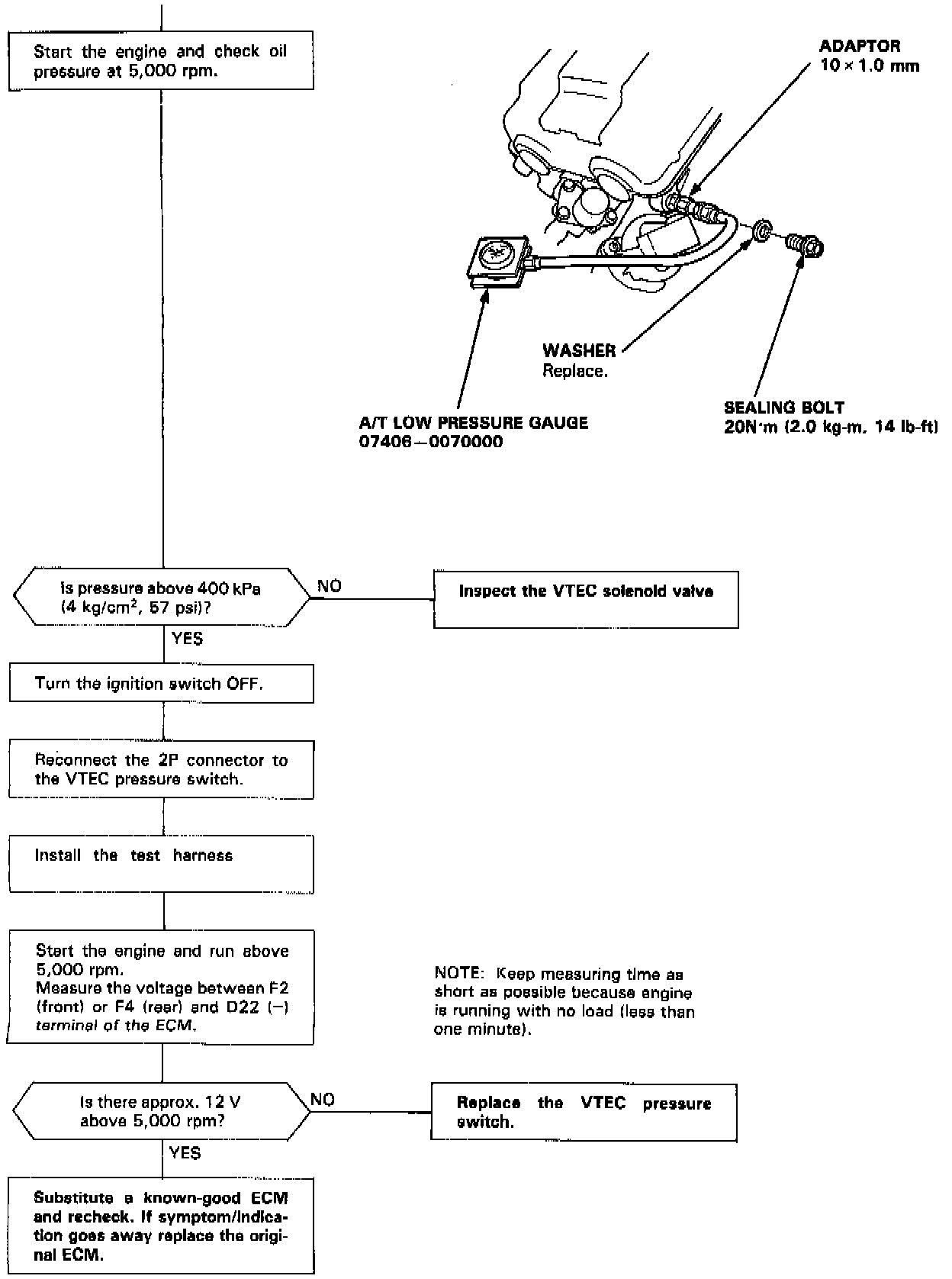 Variable Valve Timing Pressure Switch: Testing and Inspection