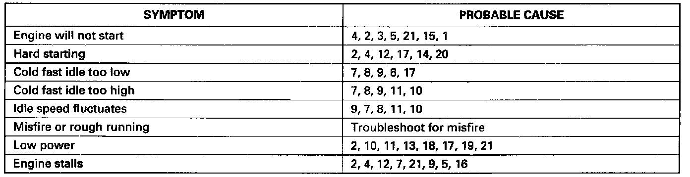 Troubleshoot each probable cause in the order listed (from left to right) until the symptom is eliminated.