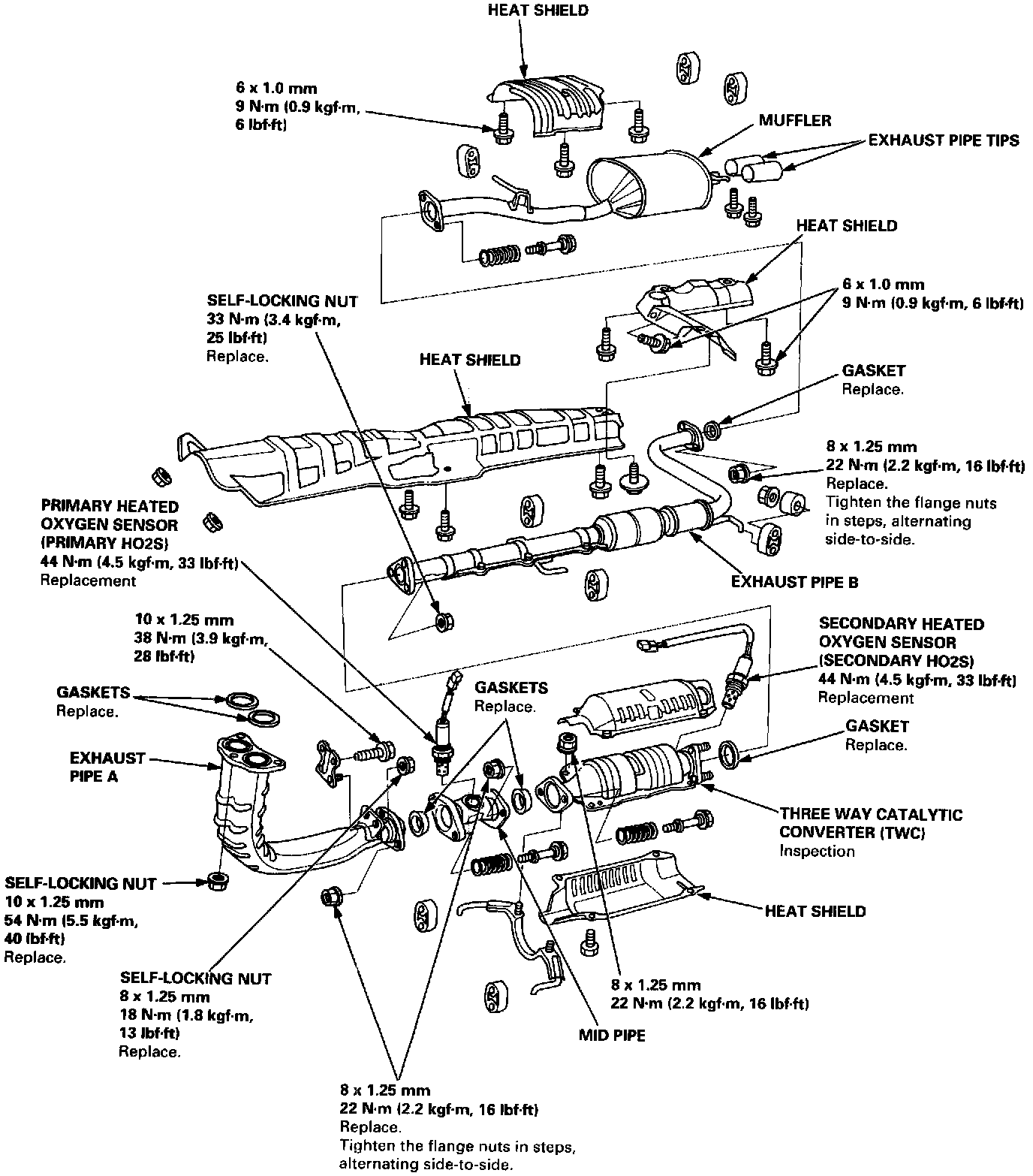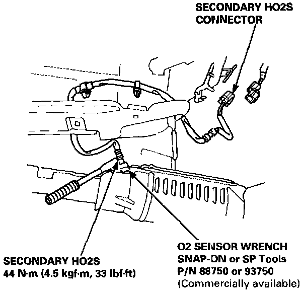 a. Disconnect the secondary HO2S connector, and remove the harness clamps, then remove the secondary HO2S.