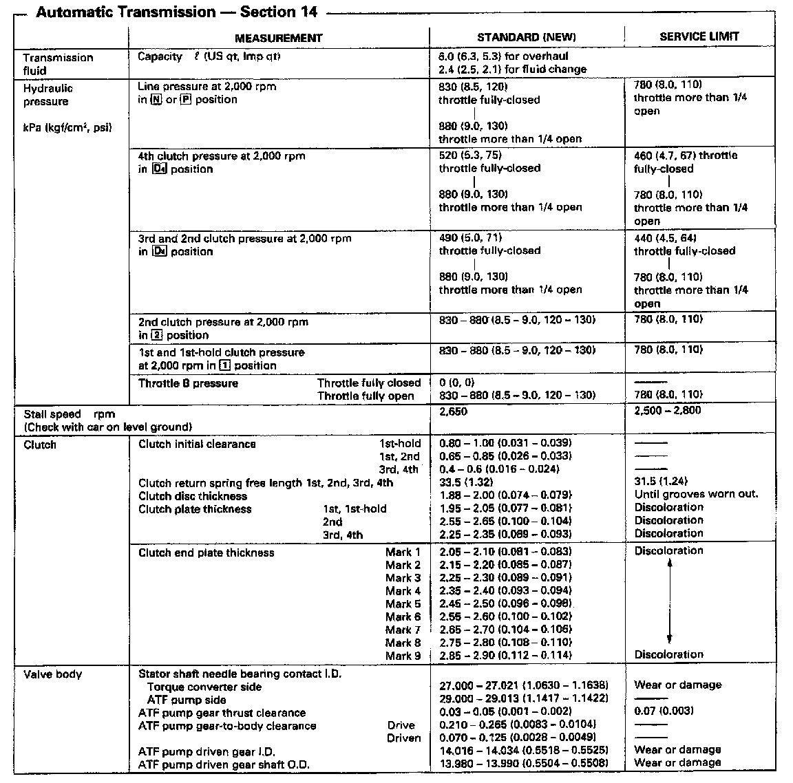 A6VA 4-spd A/T, Line Pressure, Stall Speed & Valve Body: