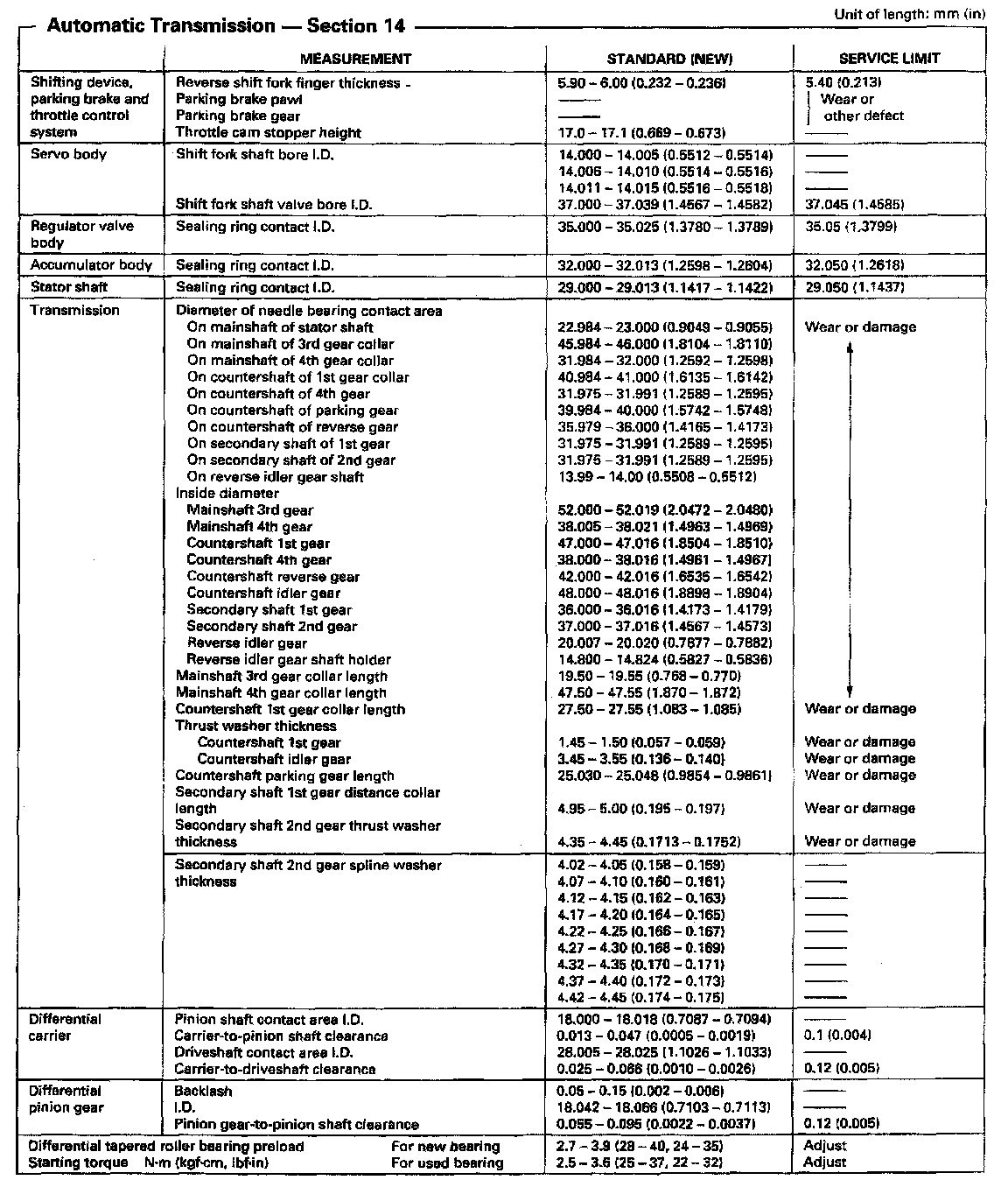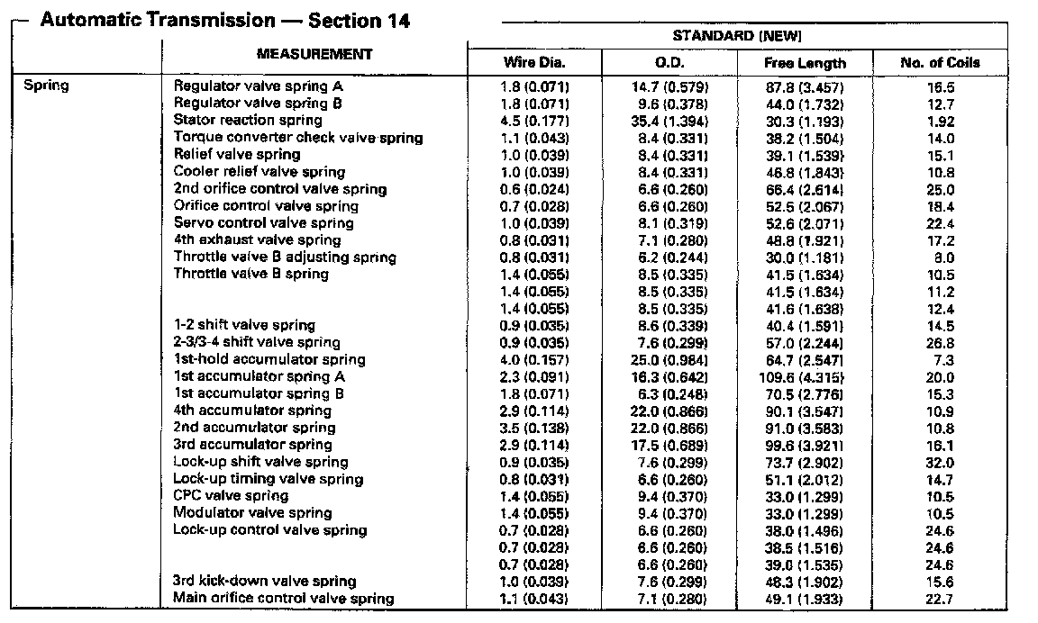 A6VA 4-spd A/T, Transmission Spring Measurement: