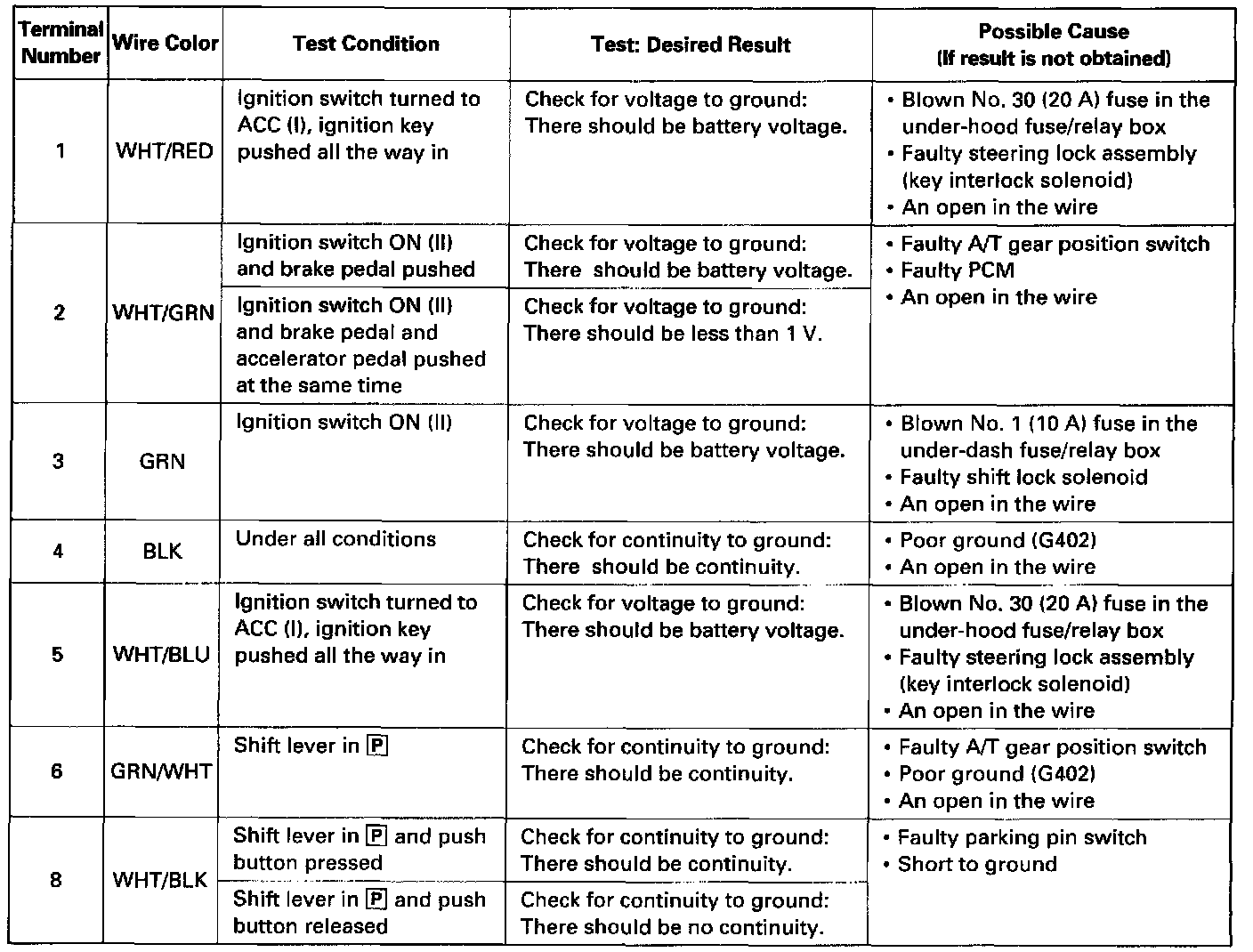 Shift Interlock Control Module: Testing and Inspection